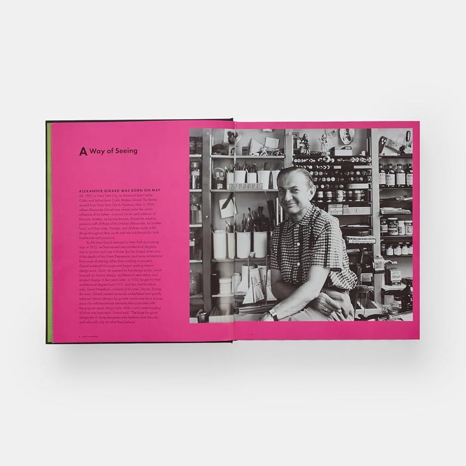 Extensively researched and thoughtfully assembled by designer Todd Oldham, in partnership with Girard Studio, the book features double gatefolds that immerse the reader in Girard's object design sketches, the vibrant environmental panels created for Herman Miller's Action Office project, his designs for Braniff International Airways, and his tireless explorations in textile design.