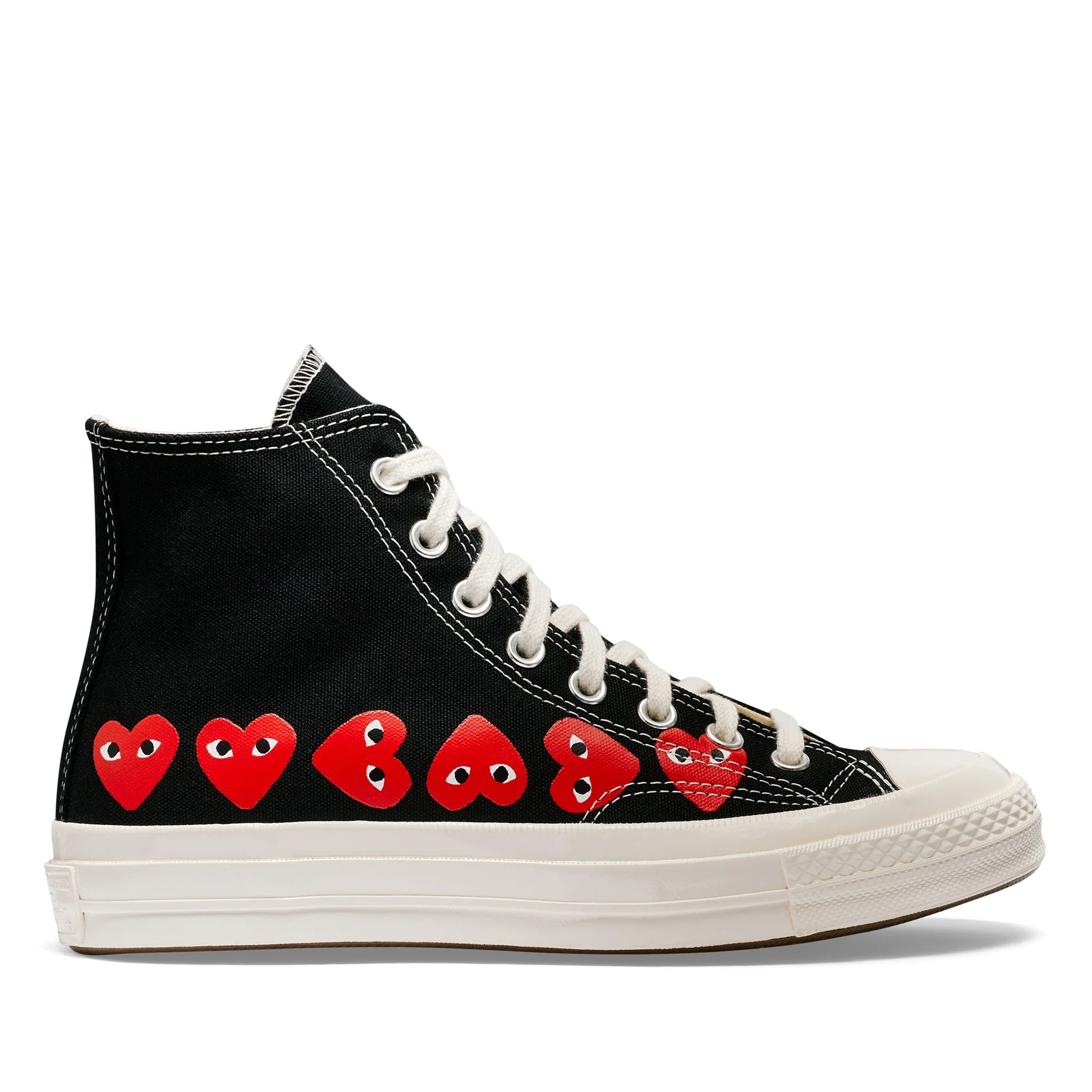 A renowned partnership, Comme des Garçons PLAY x Converse applies the Japanese label's signature whimsical graphics to the celebrated footwear brand’s iconic Chuck Taylor 1970s sneakers.