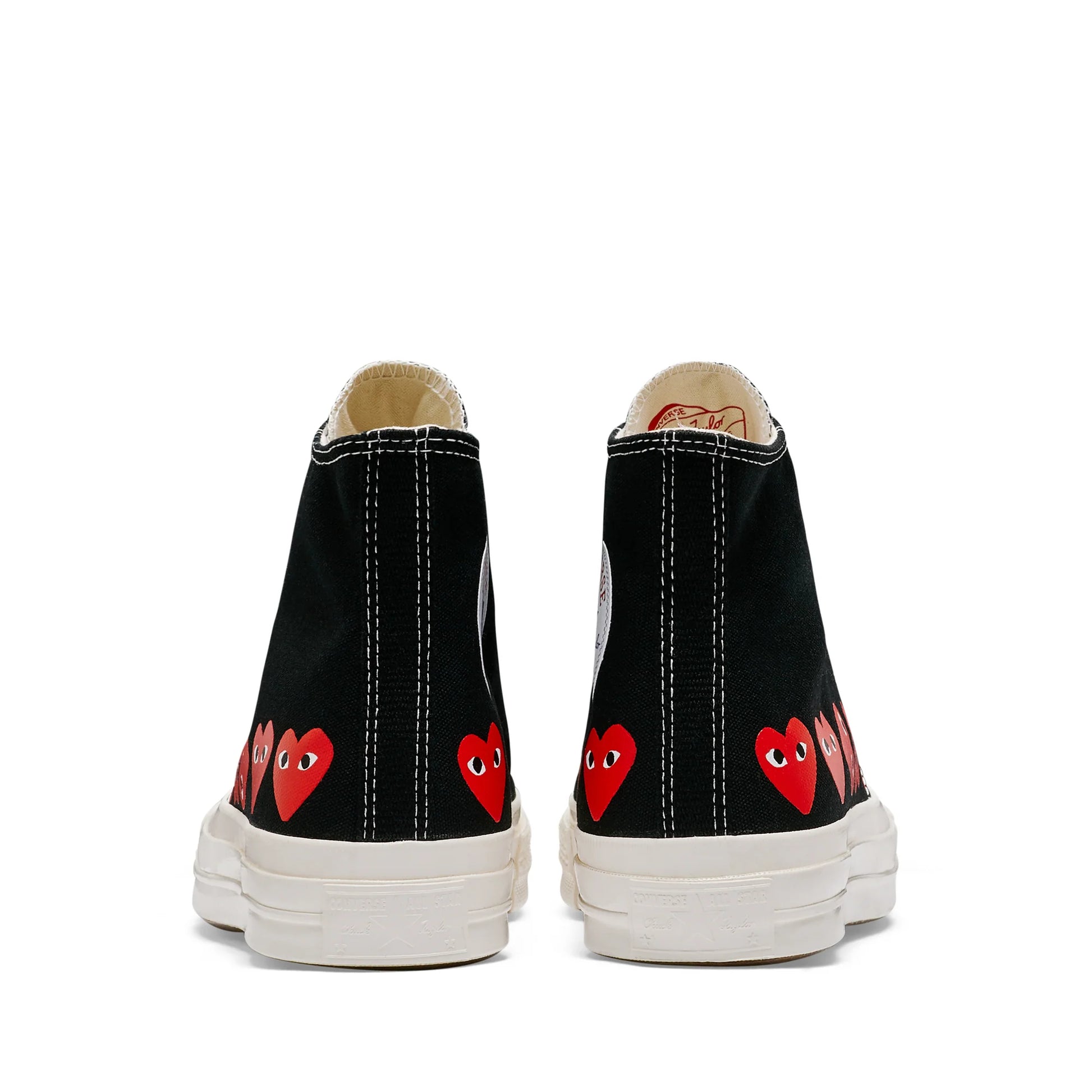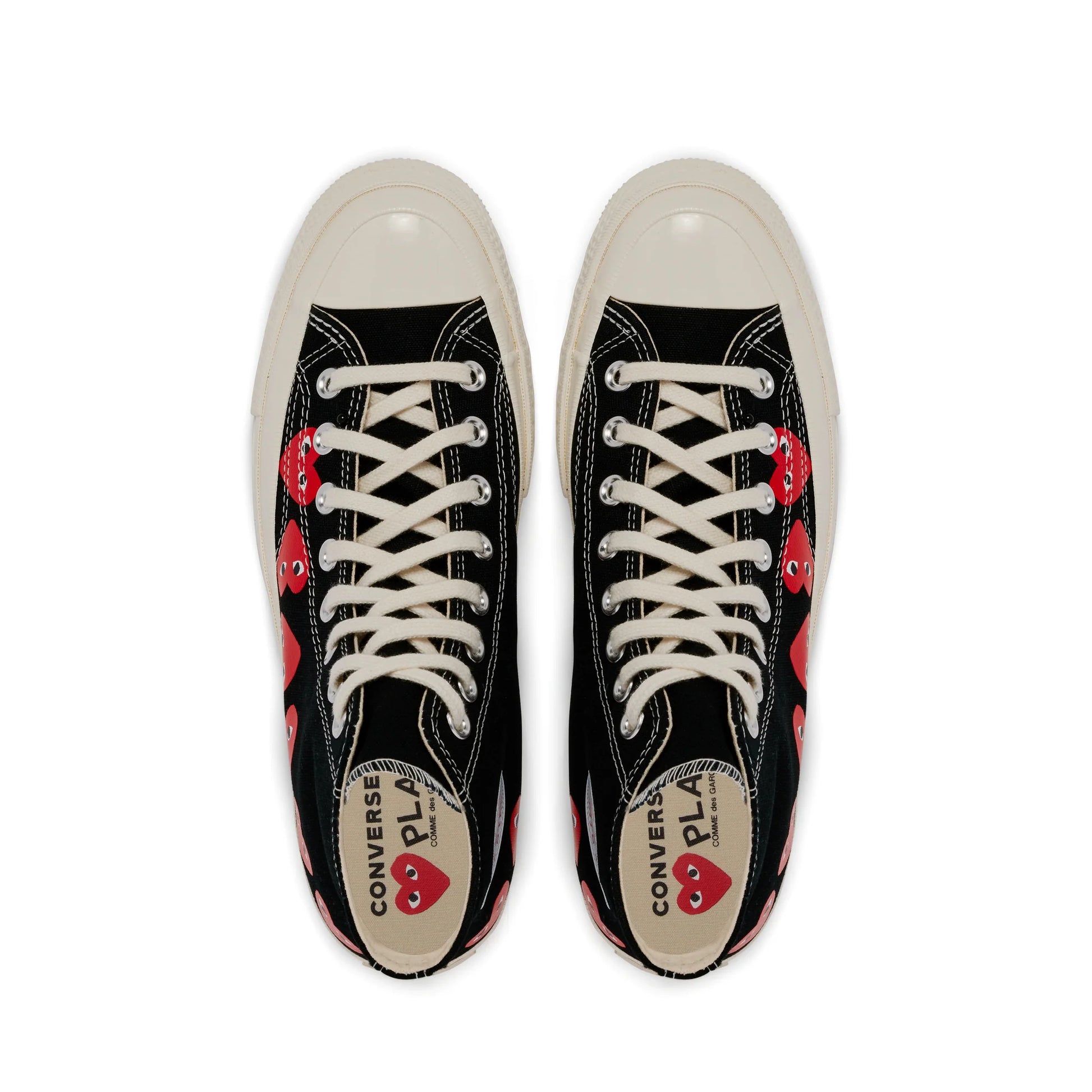 CDG PLAY X CONVERSE BLACK HIGH TOP SNEAKERS, MULTI HEART